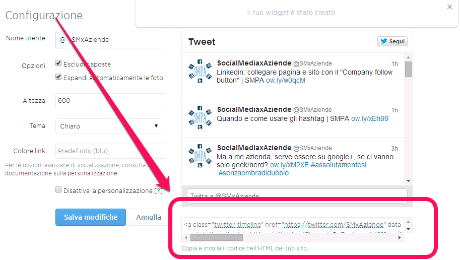Volete creare un widget da inserire nella vostra sidebar? Probabilmente in questo caso un’accoppiata Profile Widget + Follow Button (il primo per far vedere il vostro profilo, il secondo per permettere al visitatore di seguirlo) è quello che fa per voi.
