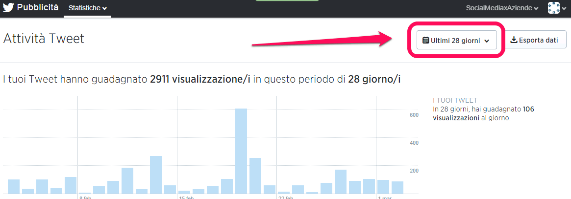 Per default vengono presi i dati degli ultimi 28 giorni, ma se volete cambiare il periodo è semplicissimo