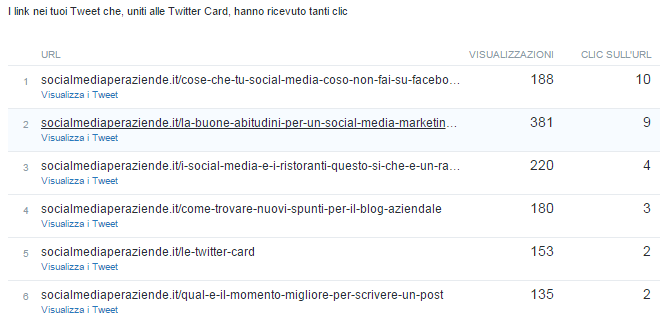 Se poi avete fatto i bravi e avete installato le twitter card, credo proprio che troverete alcuni dati particolarmente interessanti.