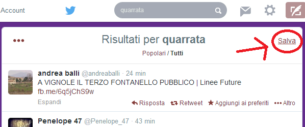 Una volta che avete sotto mano (o sotto mouse, per dirla in linguaggio 2.0) il post che contiene il link che intendete salvare, cliccate sulla freccia in alto a destra.