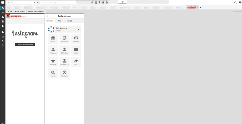 Se guardiamo bene, a prima vista l’offerta di canali social gestibili con la piattaforma probabilmente è un po’ limitata.