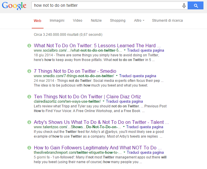 Girellando un po’ su internet ho scoperto (e non ci voleva molto, veramente) che i consigli su cosa non fare su twitter sono molteplici e l’elenco sarebbe ben più lungo di 10 miseri punti.