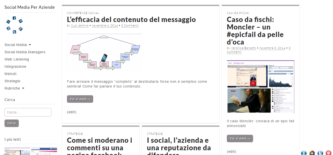 Ieri una collega mi ha fatto presente che “su socialmediaperaziende.it il primo post occupa l’intera pagina in larghezza ed è brutto perché sembra che il sito sia tutto lì“. Ci ho messo un attimo a capire che intendesse.