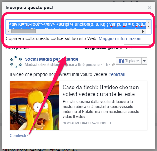 Cliccate su Incorpora post, copiate il codice che vi viene fornito…