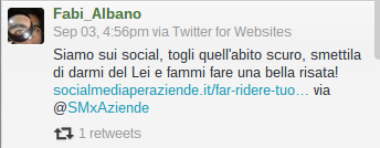 Ora a quanto pare siamo all’altro estremo. Tutto in pubblico! Gruppi aperti, pagine aziendali (ed anche qualche profilo personale) ovviamente su facebook e twitter, ma anche in forum aperti, blog, piattaforme per le recensioni.