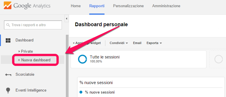 Quando aprite per la prima volta Google Analytics, vi trovate di fronte ad una pagina che ha come titolo Dashboard personale e si presenta così.