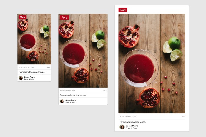 Le proporzioni di un’immagine su Pinterest devono essere 2:3 o 1:3.5. Non di più o di meno. Questa è infatti la misura perfetta per la fruizione da telefono, come spiega Kevin Knight del team di Pinterest for Business.