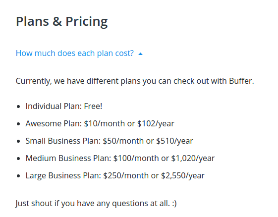 Il prezzo dell’Awesome Plan è assolutamente paragonabile con quello di Hootsuite Pro.