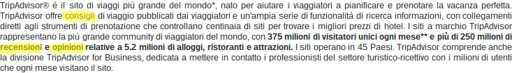 Ricordiamoci anche che TripAdvisor permette le “recensioni e opinioni” anche su luoghi. Luoghi per i quali può essere rilasciata una ricevuta (biglietto d’ingresso), ma anche altri in cui non è prevista alcuna transazione.