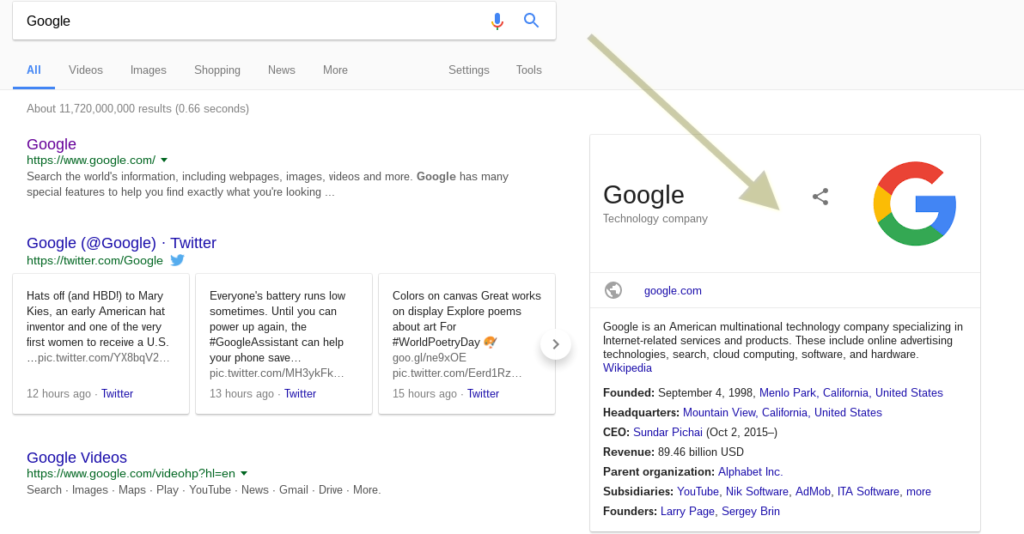 Per capirci meglio, provate a googlare voi stessi, e vedete cosa appare nel box a destra. Google stesso ci ha pensato a gestire la sua pagina!
