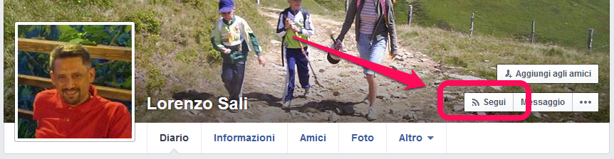 Voi potete seguire altri profili, così come gli altri possono seguire il vostro, proprio come accade su twitter, google+ ecc. Quando seguite qualcuno, i suoi post appariranno tra le vostre notizie, esattamente come se fosse uno dei vostri amici. Basta cliccare su Segui e il gioco è fatto, non dovete fare altro.
