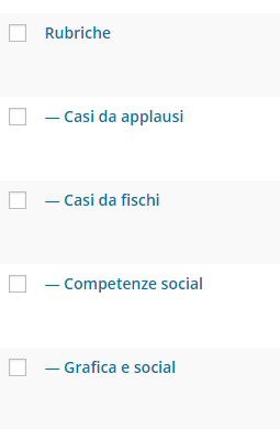 Le categorie hanno la funzione di raggruppare i post e dare un ordine al mare magnum dei vostri parti digitali. Ovvero servono a dire di cosa parla il vostro sito. Un visitatore, dando un’occhiata alle categorie del sito, dovrebbe avere già un’idea generale chiara di cosa troverà se deciderà di approfondire la lettura dei singoli post.