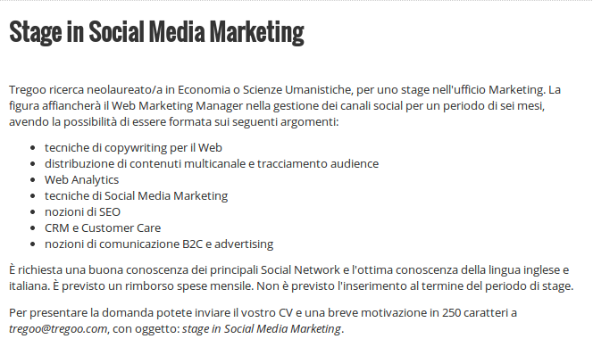 - i nostri stagisti ricevono una full-immersion social aziendale “gratis” e quando ci lasciano hanno una vera competenza spendibile