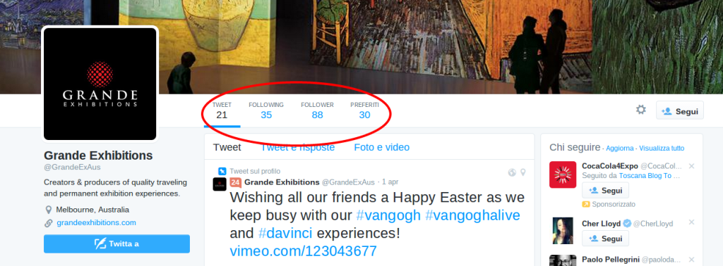 Su Facebook e Youtube, anche andando a spulciare bene, non c’è traccia dell’azienda. O meglio su Youtube si trova il video promozionale della mostra di Van Gogh creato dall’azienda stessa, ma postato da altri utenti.