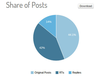 La percentuale di condivisione riferita al tipo di post contenente l’hashtag (post originale, ri-post, risposta)…